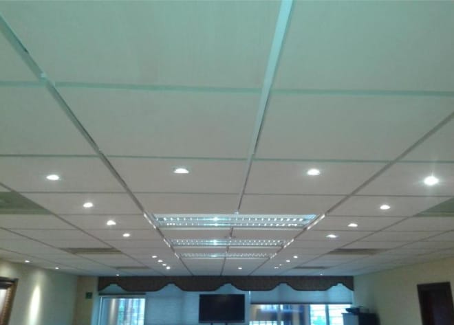 Fabricación de controladores acústicos en forma de plafón modular, se colocan sobre suspensión existente (.585 x .585 cms). Hechos a base de esqueleto rectificado y tratado, compuestos en su interior de fibra termoacústica de alta densidad como encapsulador marca Owens Corning la cual es inorgánica e incombustible, para después ser decorados en tela de nuestro catálogo.